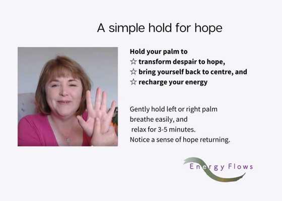 Simply holding the right place on your body can help transform dis-ease into harmony and despair into hope. I love how a simple hold can reconnect us with a sense of hope. It works with the energetic patterns in your body and helps to ease any congestion so you can feel better right away.